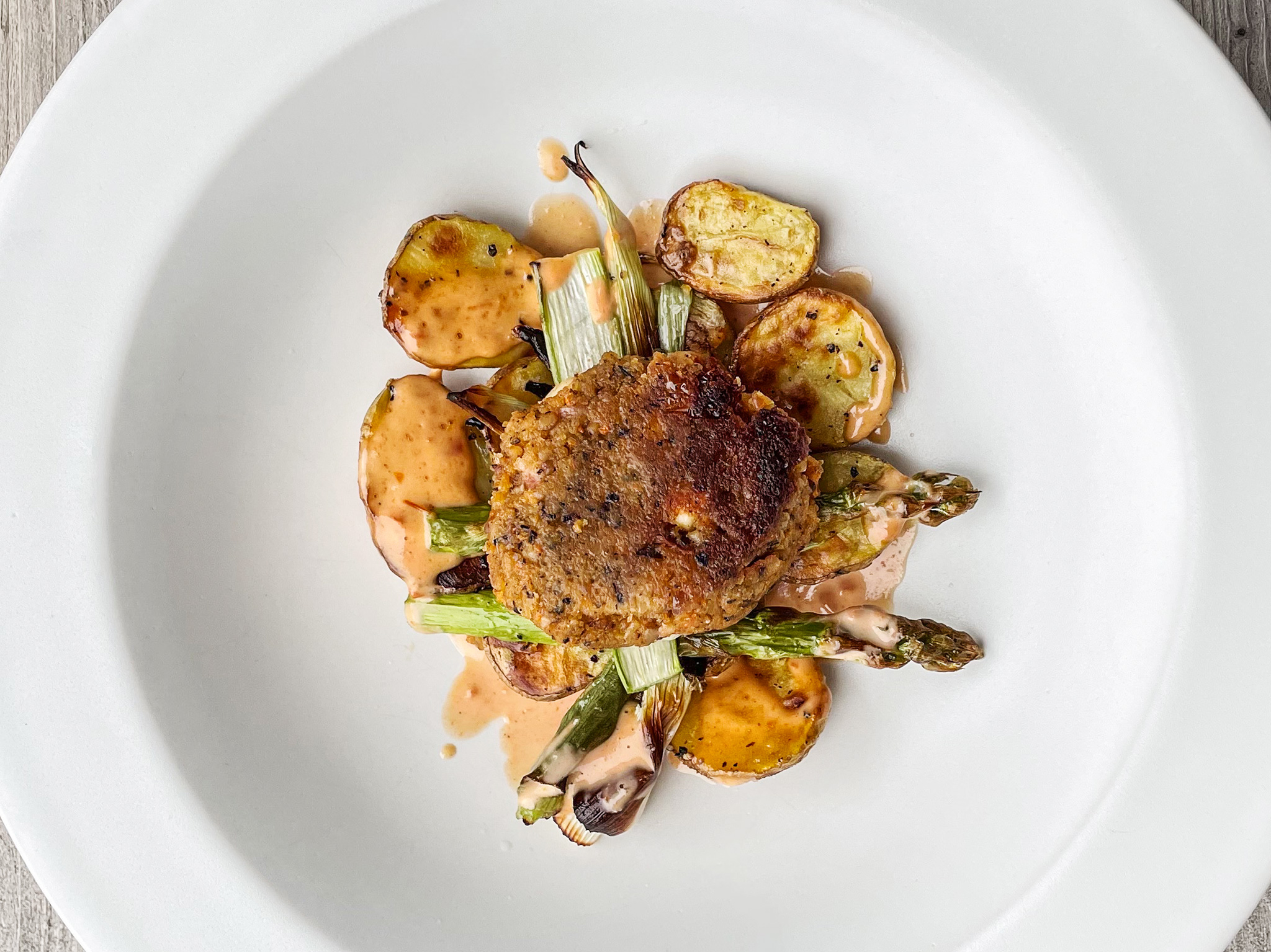 När grönsakerna i ugnen är halvklara tar du ut smeten ur kylen och klappar biffar och steker på låg temperatur i olja och smör.