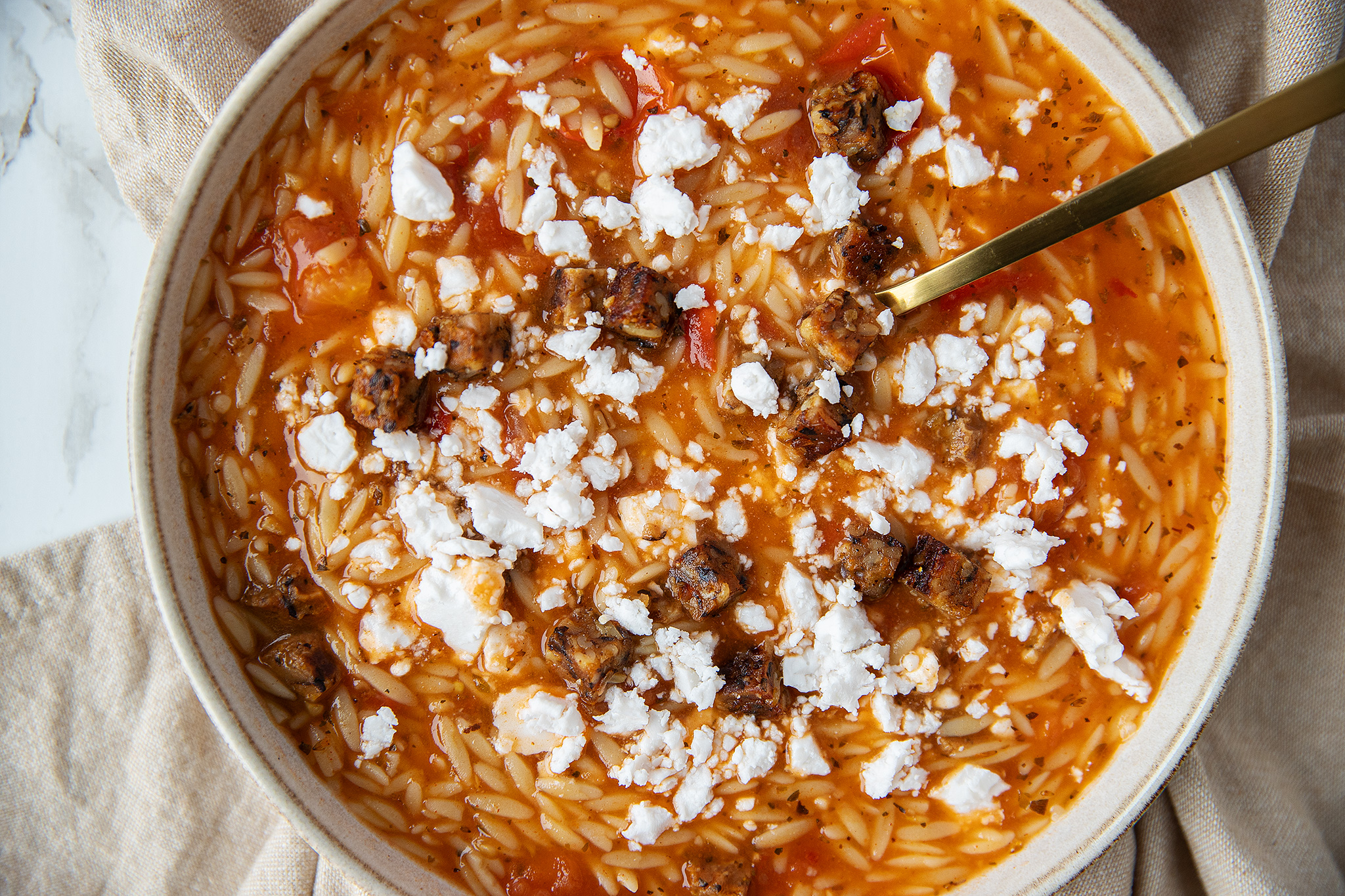 När buljongen kokar, tillsätt risoni och koka i ytterligare 7 minuter, eller tills pastan är al dente. Smaka av och salta efter behov.